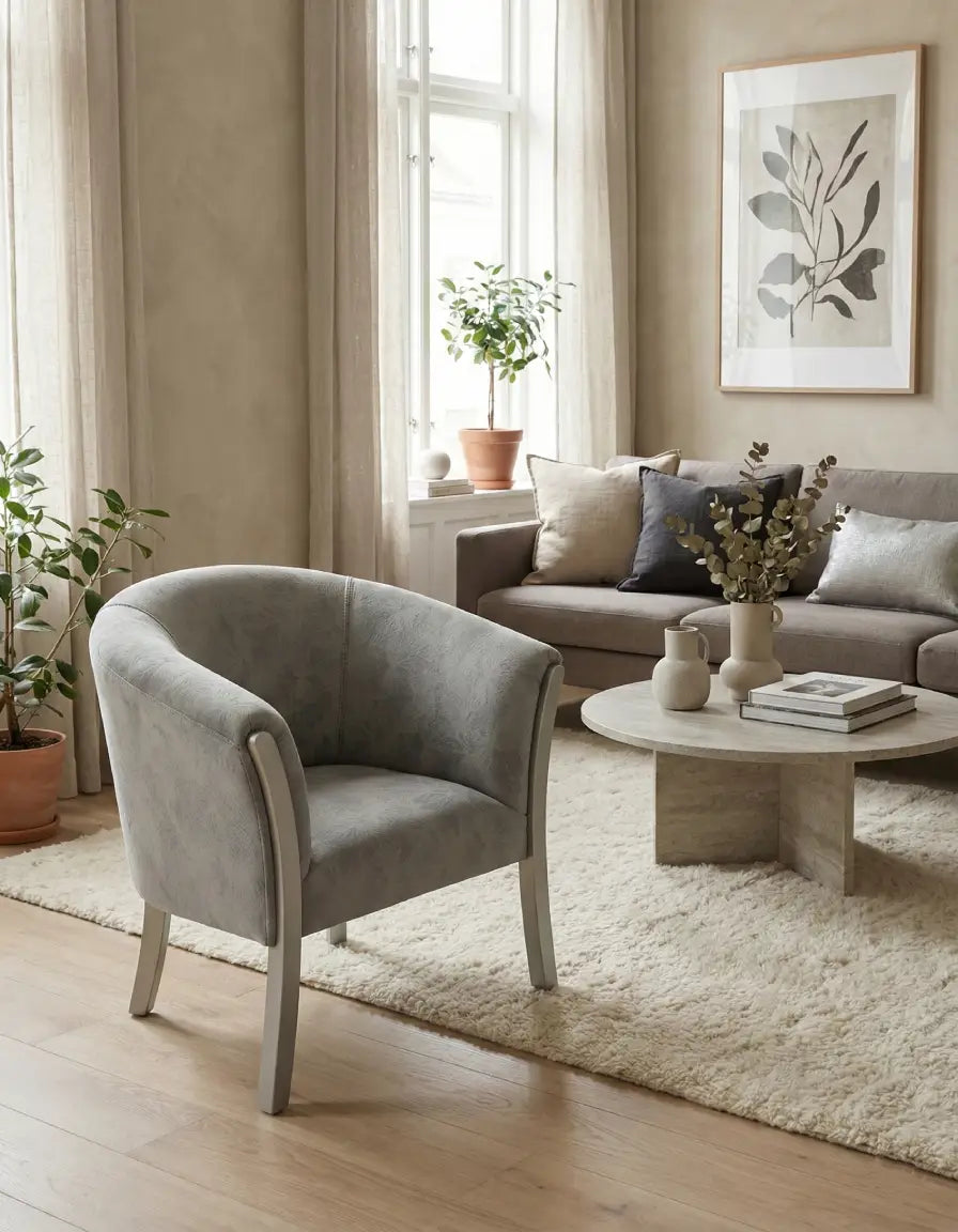 Renueva tu sala con la sofisticación irresistible de la Poltrona Andrea Gris. Su diseño moderno de líneas curvas, tapizado con un sutil patrón y elegantes patas plateadas, aporta confort inmediato y un estilo contemporáneo único a cualquier rincón de tu hogar. Aprovecha la oportunidad de adquirir esta pieza de diseño exclusivo a un precio increíble en nuestro outlet de muebles en Barranquilla y dale a tus espacios el protagonismo que merecen hoy mismo.