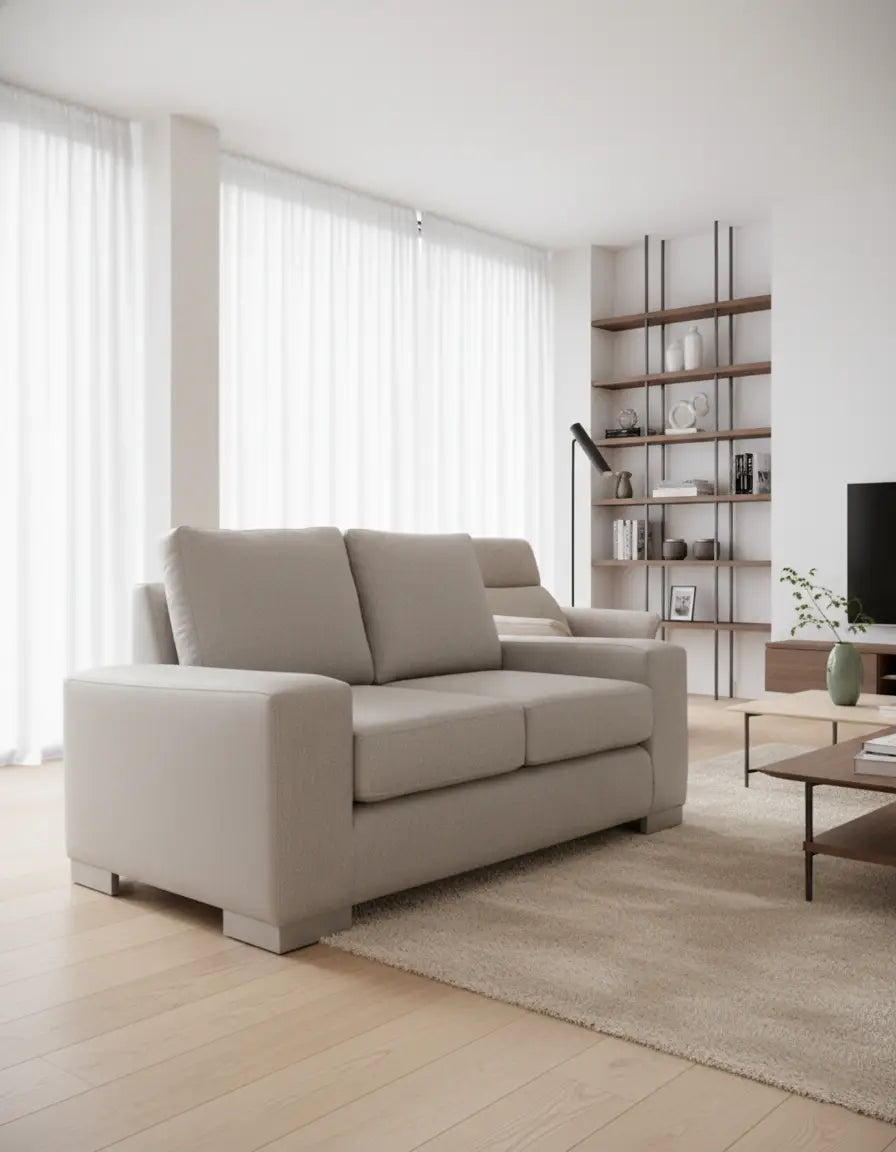 Eleva el nivel de tu entorno con el Sofá de dos plazas MENPHIS, una síntesis perfecta de elegancia contemporánea y confort duradero. Su sofisticado tapizado en gris suave y líneas minimalistas, acentuadas por una resistente base metálica, crean un equilibrio visual que moderniza instantáneamente cualquier sala u oficina. Disponible en harvi outlet, este mueble no solo promete ser el centro de atención por su diseño impecable, sino que ofrece una experiencia de descanso superior, fusionando funcionalidad y estilo para quienes exigen lo mejor en su hogar.