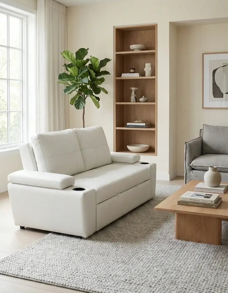 Disfruta del máximo confort y funcionalidad con el Sofacama Gallery 1.20, una pieza maestra de diseño moderno que integra portavasos y un acabado impecable para transformar tu sala de estar. Esta joya de mobiliario es la opción definitiva para quienes buscan muebles en Barranquilla de alta calidad, garantizando un descanso placentero y una estética sofisticada que tus visitas admirarán.